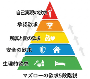 アブラハム・マズローは、人間の欲求は5つの階層からなるピラミッドのような構造になっていると提唱しました 。ピラミッドの最下層にある最も基本的な欲求が満たされると、人は次の段階の欲求を求めるようになります 。この欲求の「順番」こそが、私たちの行動や、無意識に選んでしまう恋愛パターンを深く決定づけているのです 。